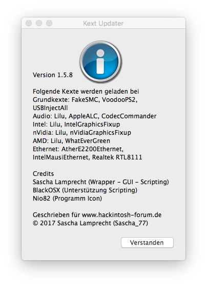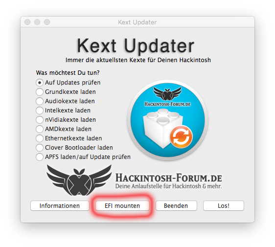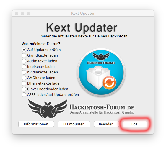 Denn auf jeden Fall sollten Clover und unsere Hackintosh-Kexte vor einem System-Update so aktuell wie möglich sein, genau für diese Updates hat unter anderem @Sascha_77 unsere App „Kext Updater“ entwickelt.