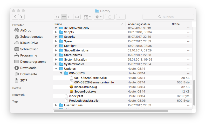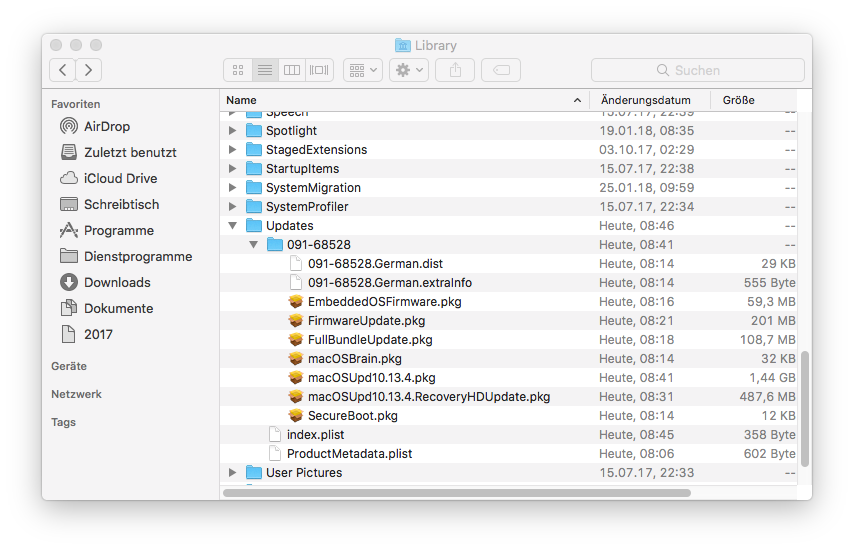 Kleinere System-Updates werden immer in den Ordner /Library/Updates geladen.