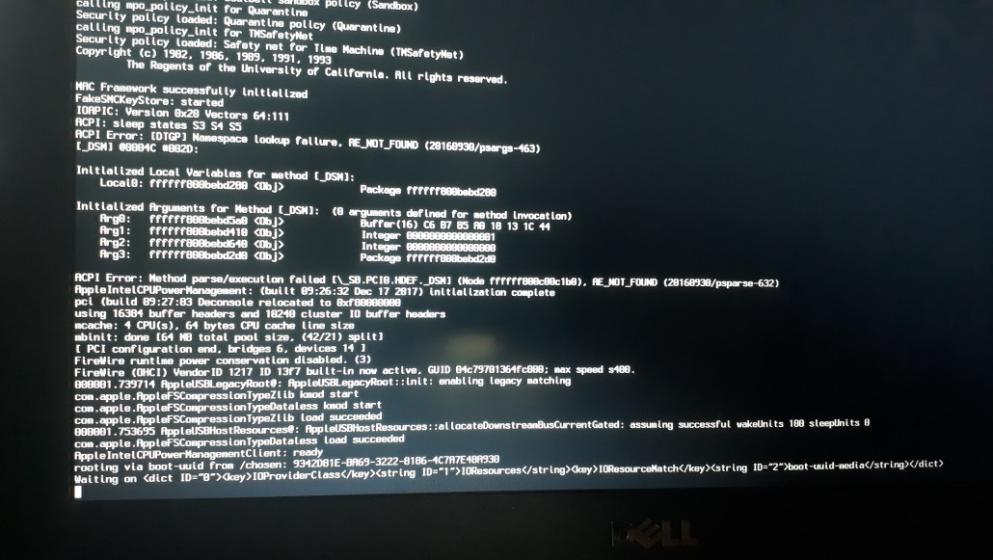 Ich versuche auf einen Dell Laptop OSX 10.13 zu installieren.