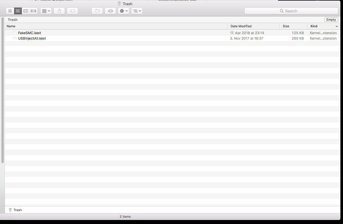 So also ich habe folgende zwei gelöscht (siehe Screenshot), mehr war da nicht in dem Ordner und auch unter /System/Extensions nicht?! Oder gibt es da noch einen anderen Ordner?