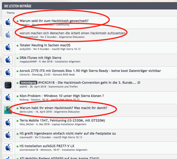 • Interesse zu sehen was dahinter steckt, warum gerade etwas funktioniert und warum nicht. Und was notwendig ist einen laufenden Hackintosh-Rechner aufzusetzen.