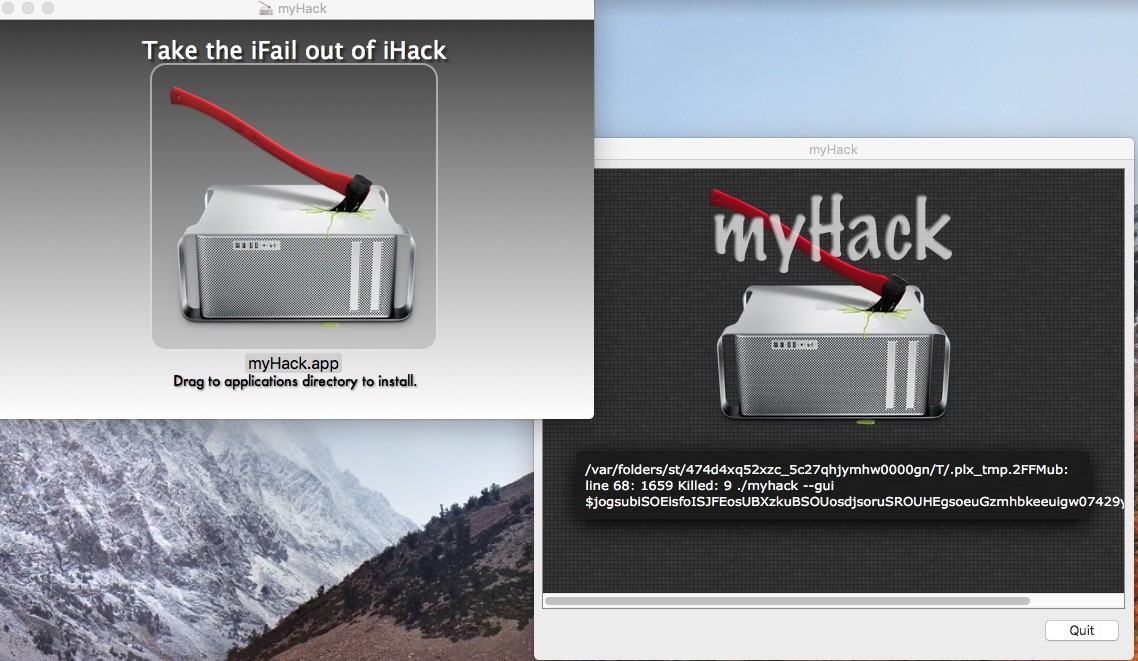 MyHack scheint mit den neueren Versionen von macOS nicht mehr parat zu kommen. Ich habe die 1.1 noch aber die steigt mit dem gleichen Fehler aus unter HighSierra...