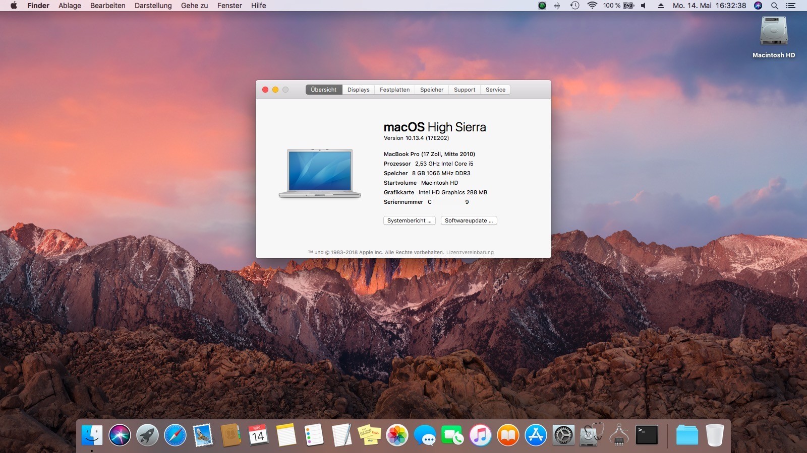 • Versuche alternative mal ein anderes SMBios. MacBookAir5,2 mal als Vorschlag.