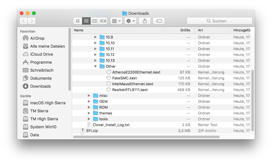 darin befindet sich der efi ordner... sollte ich diesen auf meinen Stixk (install macos high sieera) mit reinkopieren, so das der Stick den Inhalt „install mac Os High Sierra“ + efi ordner behinahltet? -