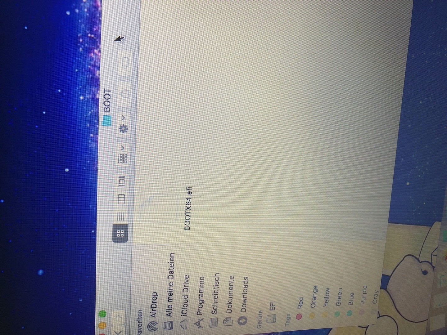 - wenn dem so ist, dann starte macOS mounte mit dem CC die EFI-Partiotion von der Platte auf der sich Windows befindet. Dort sollte es einen EFI Ordner geben, den Windows angelegt. Enthalten sind die Ordner Boot und Windows