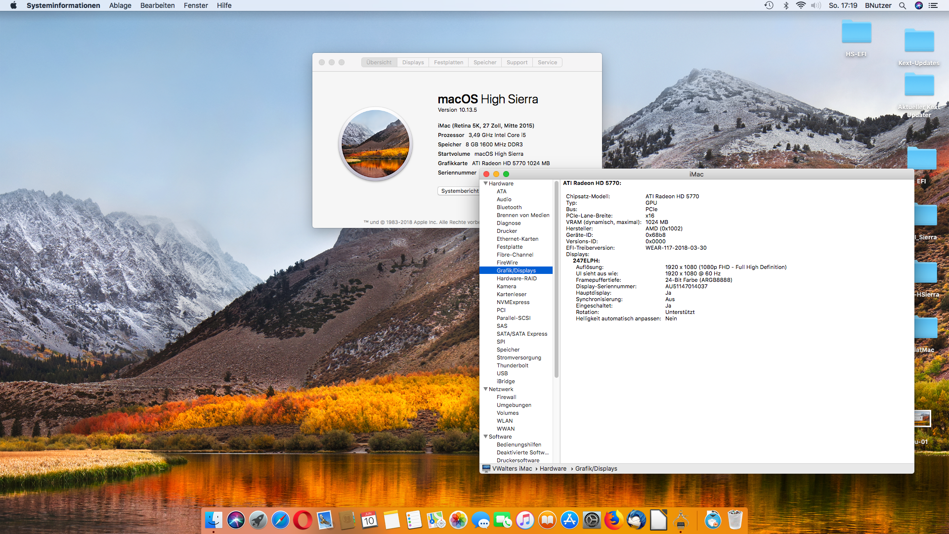 Abgesehen davon, dass trotz eingestellter Clover-GUI-Auflösung es mehr nach 800x600 ausschaut, verhielt die HD5770 sich unter HS & Sierra perfekt. Bild ist ok - HDMI-Ton ist auch da.