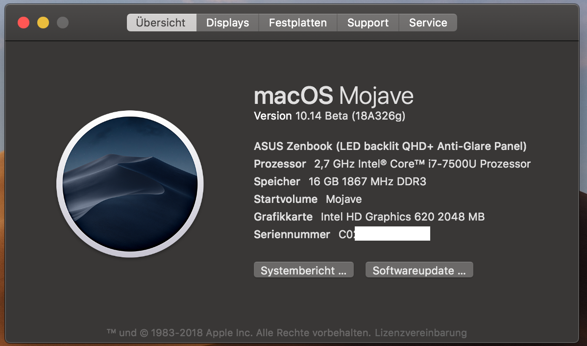 • Woher weiß ich denn wie viel VRAM meine HD620 hat? Und wie hast du die System Infos so toll verändert? Und warum schwärzt jeder seine Seriennummer; sind die geschwärzten von einem echten Mac? Vielen Dank :)