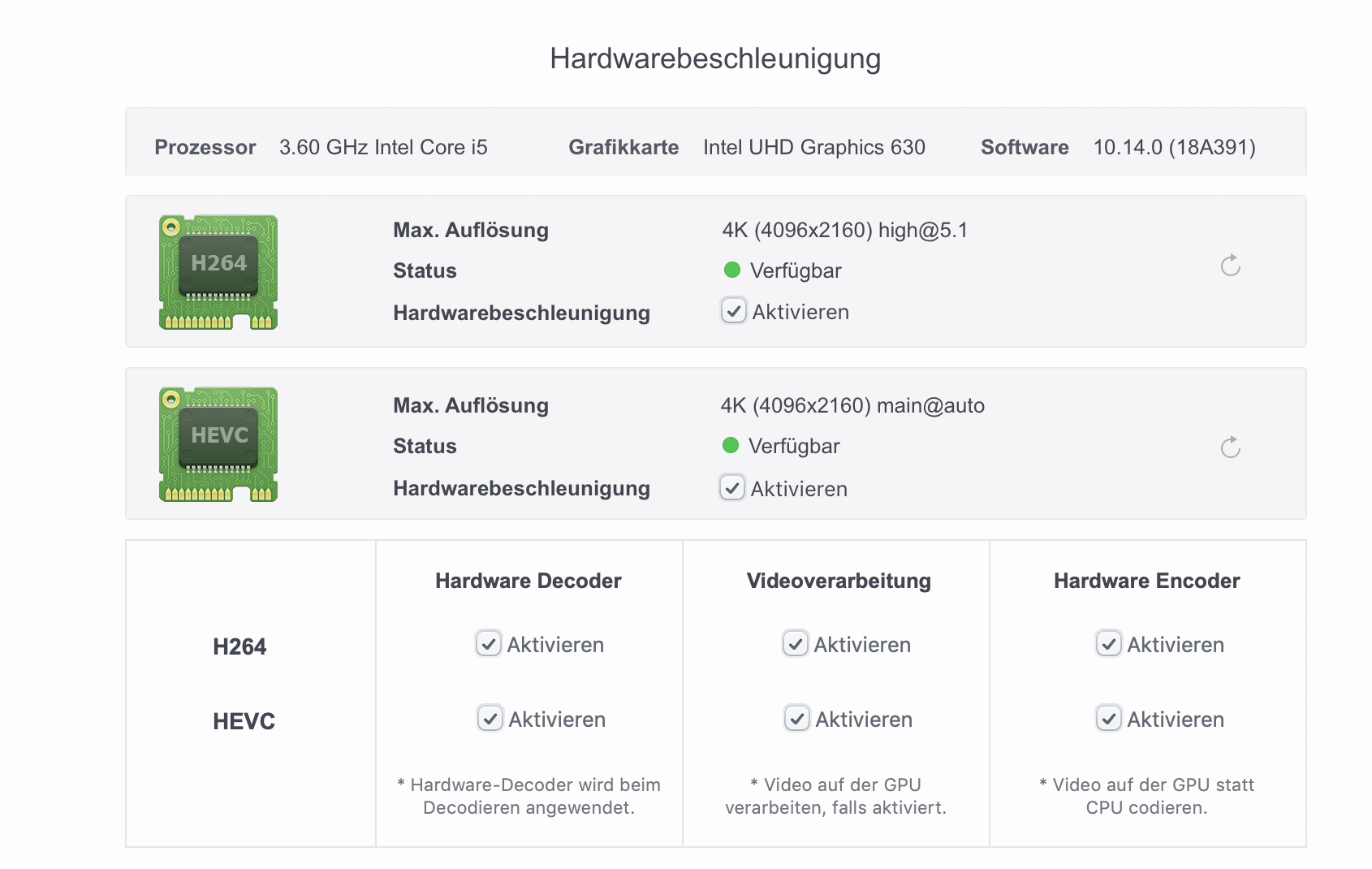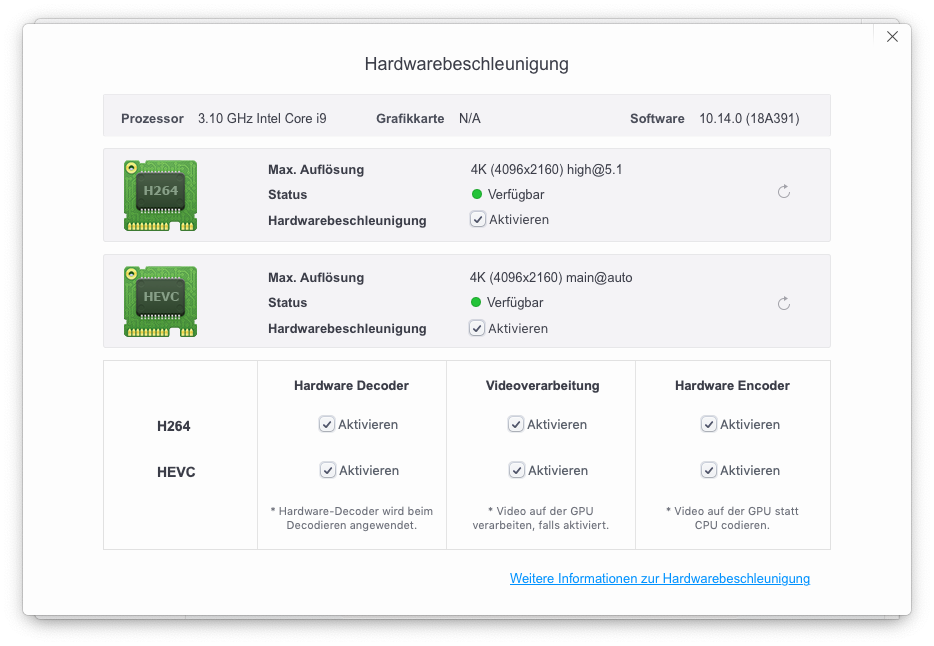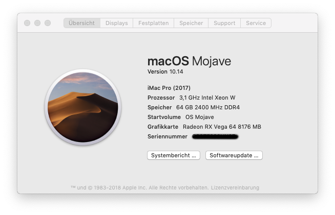 • So, mein BigMac hat es jetzt auch geschafft. Bis auf Thunderbolt (unter High Sierra lief es) funktioniert alles ohne Probleme. Leichter Geschwindigkeitsvorteil (ca. 3000 Pkt. Multicore) unter Mojave gegenüber High Sierra.