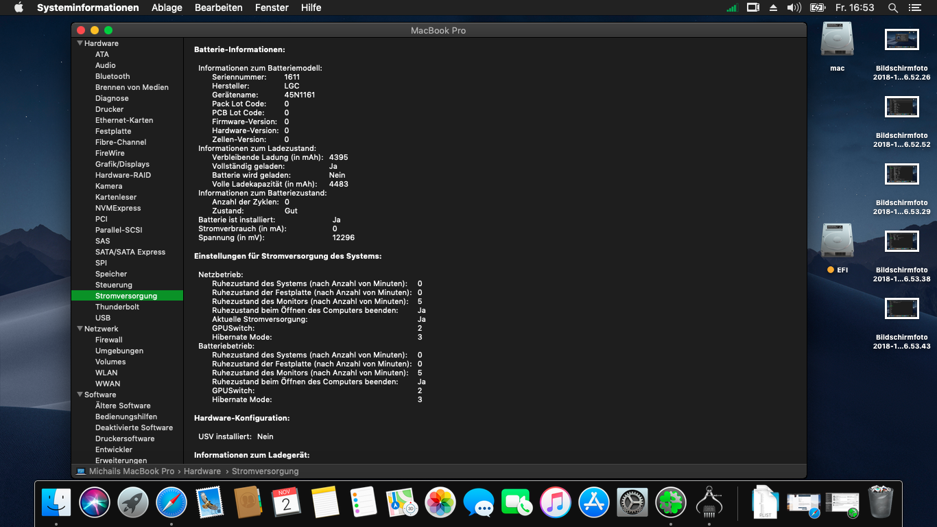 Was leider nicht klappt ist iMessage und Facetime (wobei die Kamera 720p klappt) Aber alles andere wie Batterieanzeige, Grafikkarte ect klappt. Sonst ist mir nix aufgefallen :D Hier ein paar Bilder und natürlich die EFI: