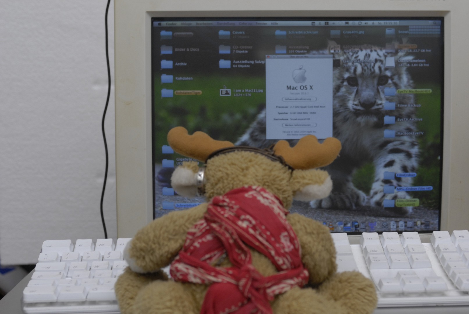 Er läuft mit Mac-Betriebssystemen ab Leopard 10.5.8, immer wieder aktualisiert und erneuert, das dicke Teil randvoll mit großen Festplatten incl. zweier FusionDrives und für Mojave erstellter APFS-SSD. Für die älteren Systeme müsste ich allerdings eine ältere Grafikkarte aus dem Regal holen..