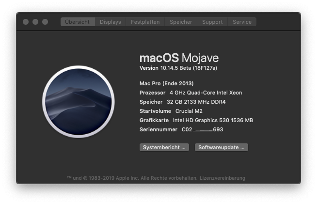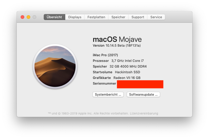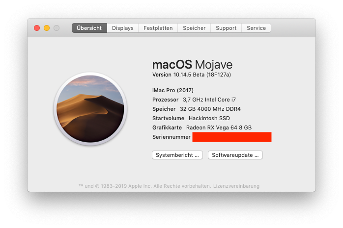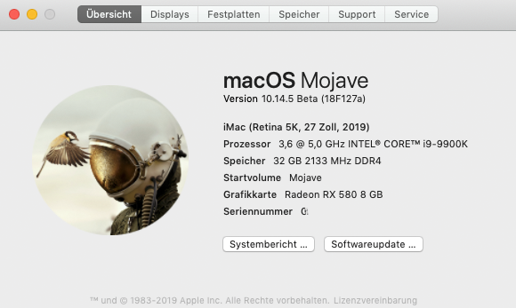 • Update 10.14.5 Beta (18F127a) sauber und ruckzuck durchgelaufen :-)