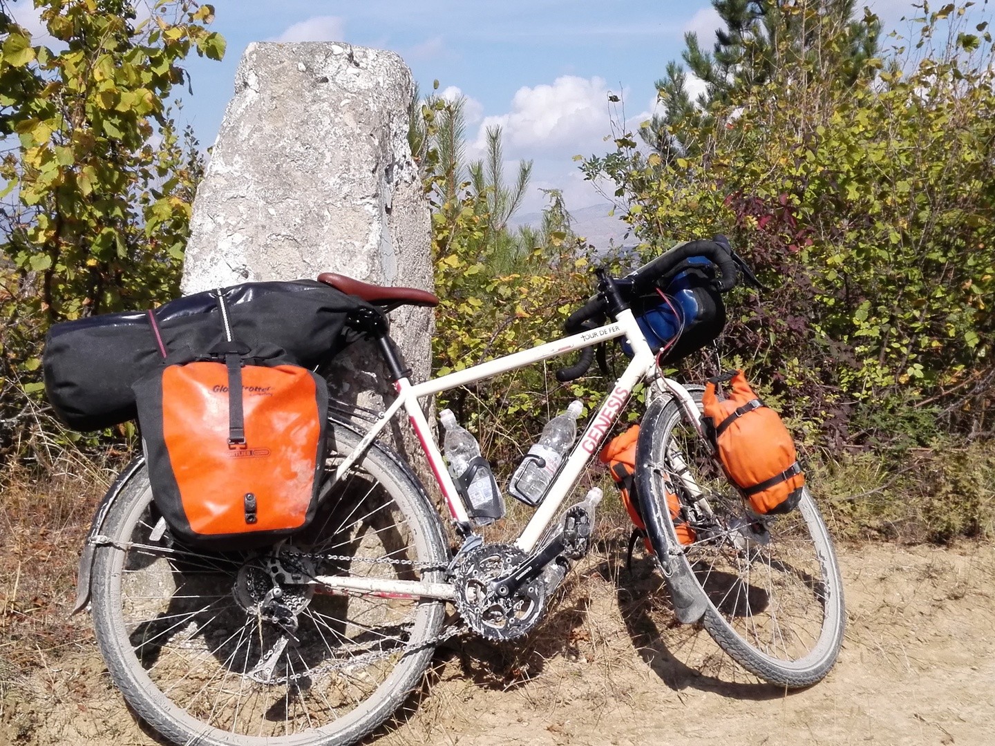 Das Genesis (hier am Grenzstein Albanien/Griechenland) hab ich letztes Jahr in Montpellier gekauft und bin bis Thessaloniki damit weitergefahren. Auch dieses Jahr hats schon ein paar km gemacht. Es ist der Nachfolger meines in Montpellier auf grosser Tour gestohlenen Surly (Bild 2), was 9 Jahre alt war und selbstaufgebaut.
