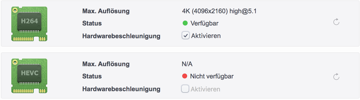 H264 funktioniert, jedoch HEVC noch nicht.