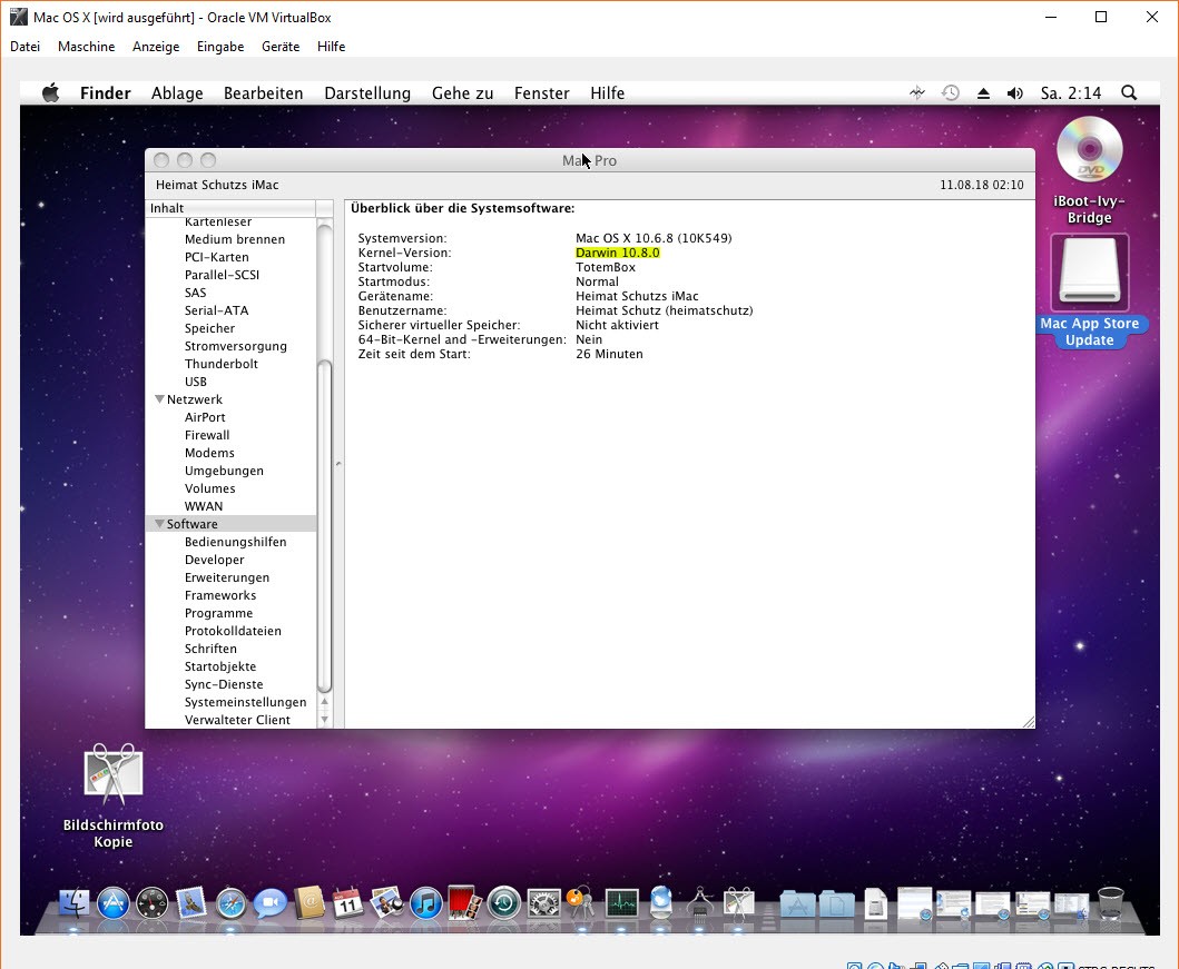 Was mir jetzt aufgefallen ist, das da Darwin 10.5 steht. Müsste aber 10.8 sein. Ob sich Apple daran stört??