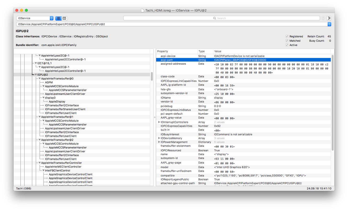 ioreg ist im Anhang. HDMI wird scheinbar als AppleDisplay erkannt.
