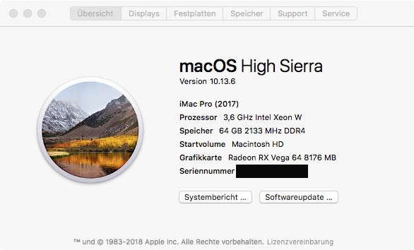Ansonsten sollte man ein Skylake X System nicht mit einem normalen Desktop vergleichen. (und auch nicht mit dem „missratenen iMac Pro“ – Kühlung und damit Leistungsreduktion)