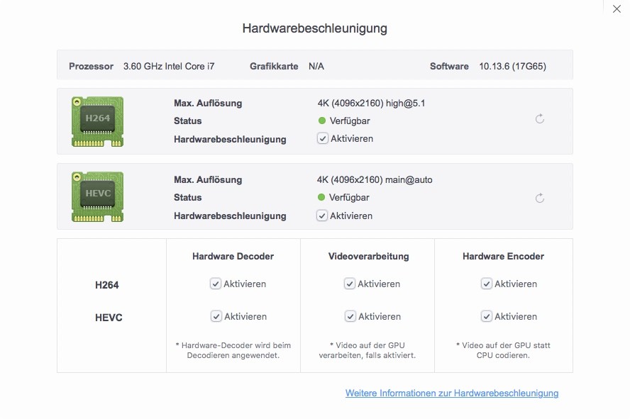 FARV hat laut Profil einen 8700K und High Sierra und die iGPU des 8700K brauchte unter HS eine FakeID oder ein Kext damit die Beschleunigung funktioniert. Alles gut.