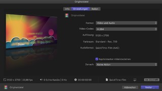 !!!!!! Wichtig, macht man den Test mehr als einmal, muss man vor jedem Test, die alte Zieldatei löschen. Überschreibt man sie nur, nimmt FCP eine Abkürzung. Und dar Ergebnis ist falsch.