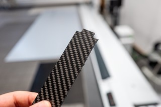 Bezüglich der Einstellungen kann ich dir die genauen Werte gar nicht sagen, da ich mir die nicht aufgeschrieben habe. Ich weiß nur, dass mein Kollege meinte, dass wir wohl um langsamer werden müssten mit den Umdrehungen und dem Vorschub. Sonst werden auf der Maschine eigentlich nur Kunststoffe für Werbemittel (Buchstaben, Schilder etc.) bearbeitet, daher mussten wir uns beim Carbon einfach mal herantasten. Er wollte sich aber auch noch mal Infos vom Hersteller selbst einholen.