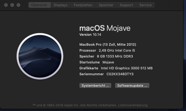 nach längerer Schöpfungspause, habe ich mich nun doch getraut und Mojave auf meinen x220 aufgespielt. Hat auch alles soweit geklappt, habe die HS HD3000 texte eingespielt und somit auch die volle Auflösung mit 512MB.