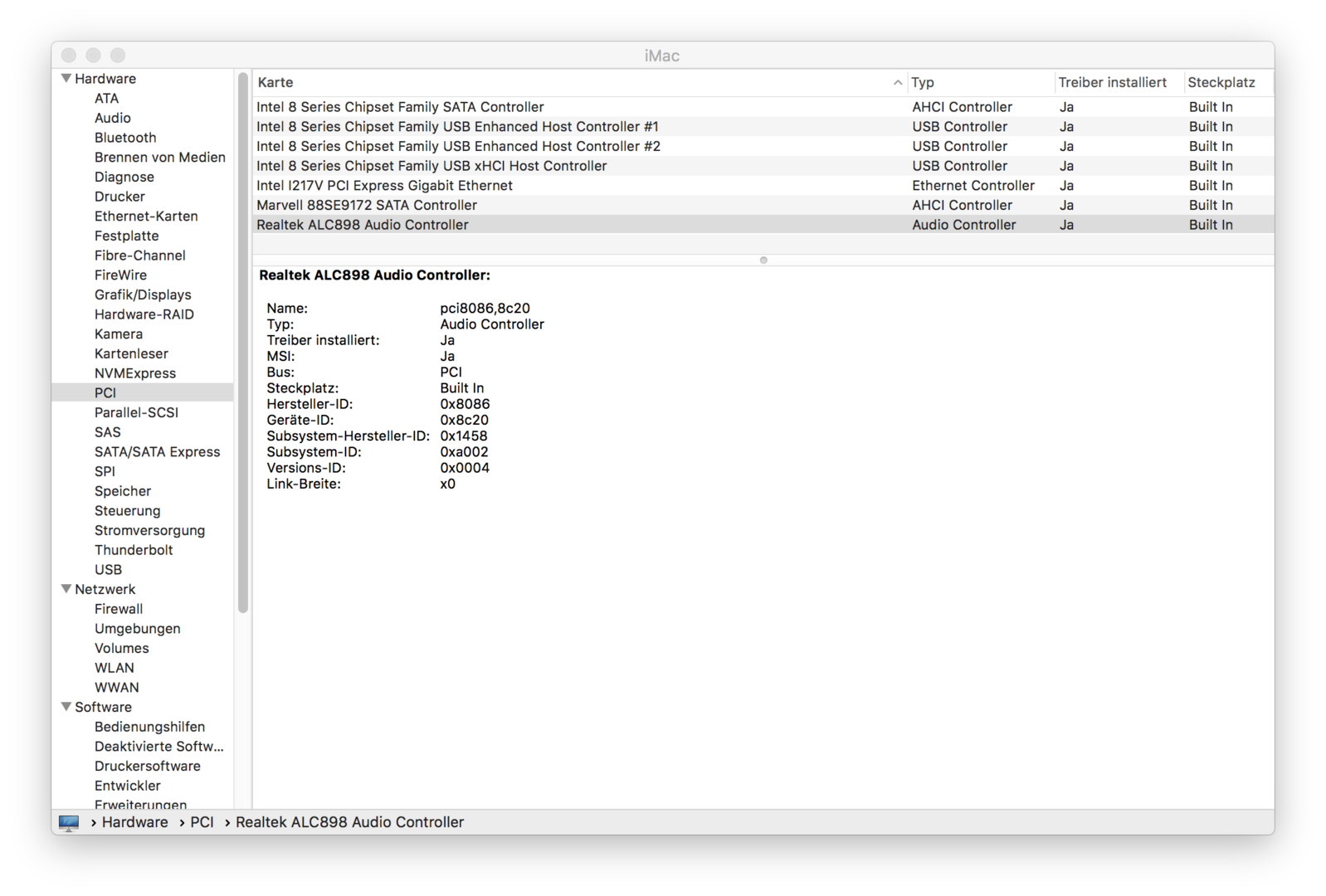 Ich habe die Graphikkarte in dem obersten Slot der laut Beschreibung des Bords 16fach ist, Mac OS sag er wäre nur 8 Fach angebunden. Da sagt er sowohl wenn die WLAN/BLuetooth Karte im Bord ist als auch draußen.