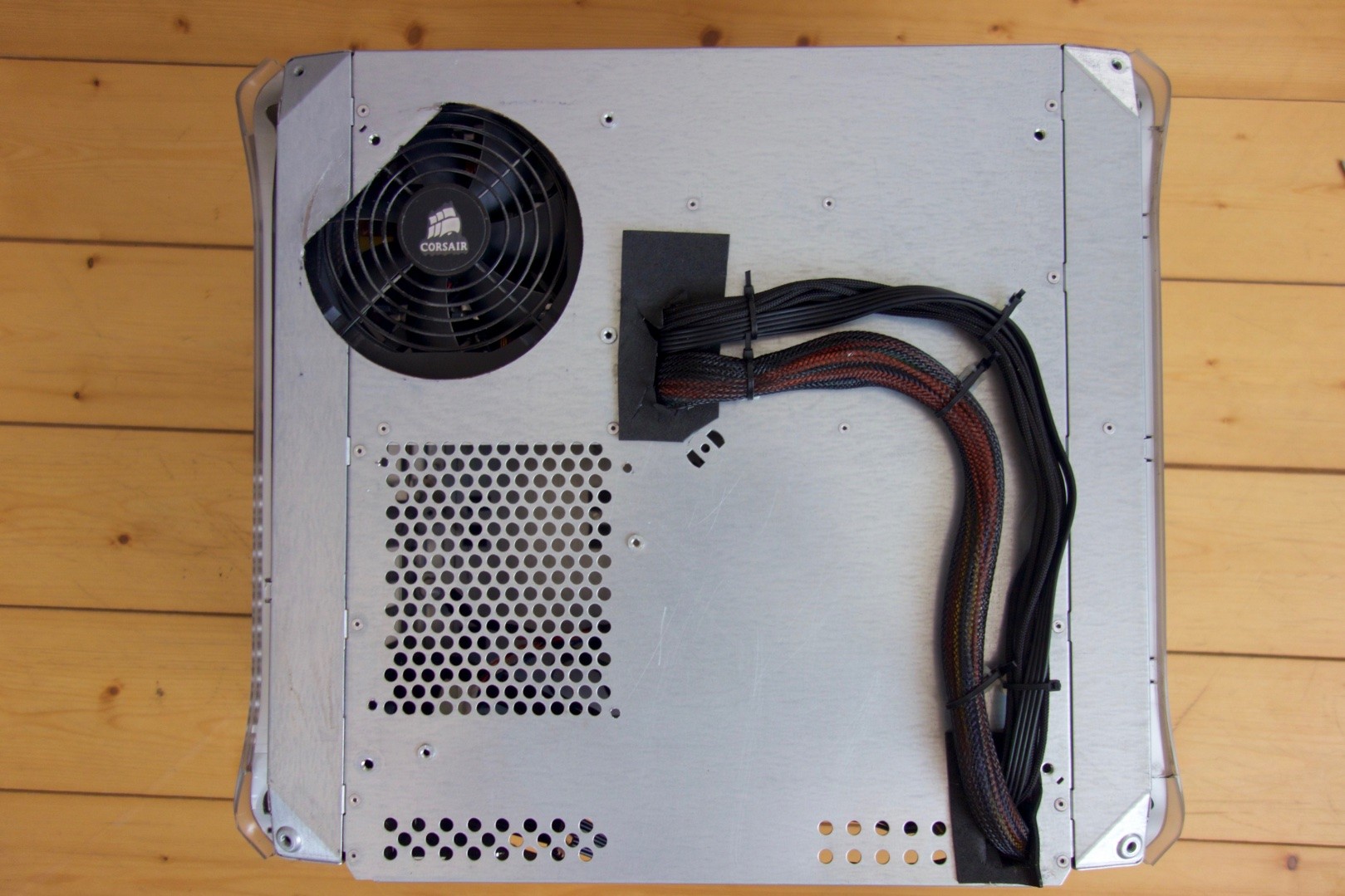 • Das G4 stellt durch das begrenzte Raumangebot besondere Ansprüche an Kabelmanagement. Ich hatte die Kabel vom Netzteil zwischen Gehäuse und Außenschale geführt, und brauchte dabei Verlängerungen, die auch durch die Aussparungen im Stahlkäfig passten. Da hat mir ein teilmodulares Netzteil eher geholfen. Zudem kann man unbenötigte Kabel abklemmen.