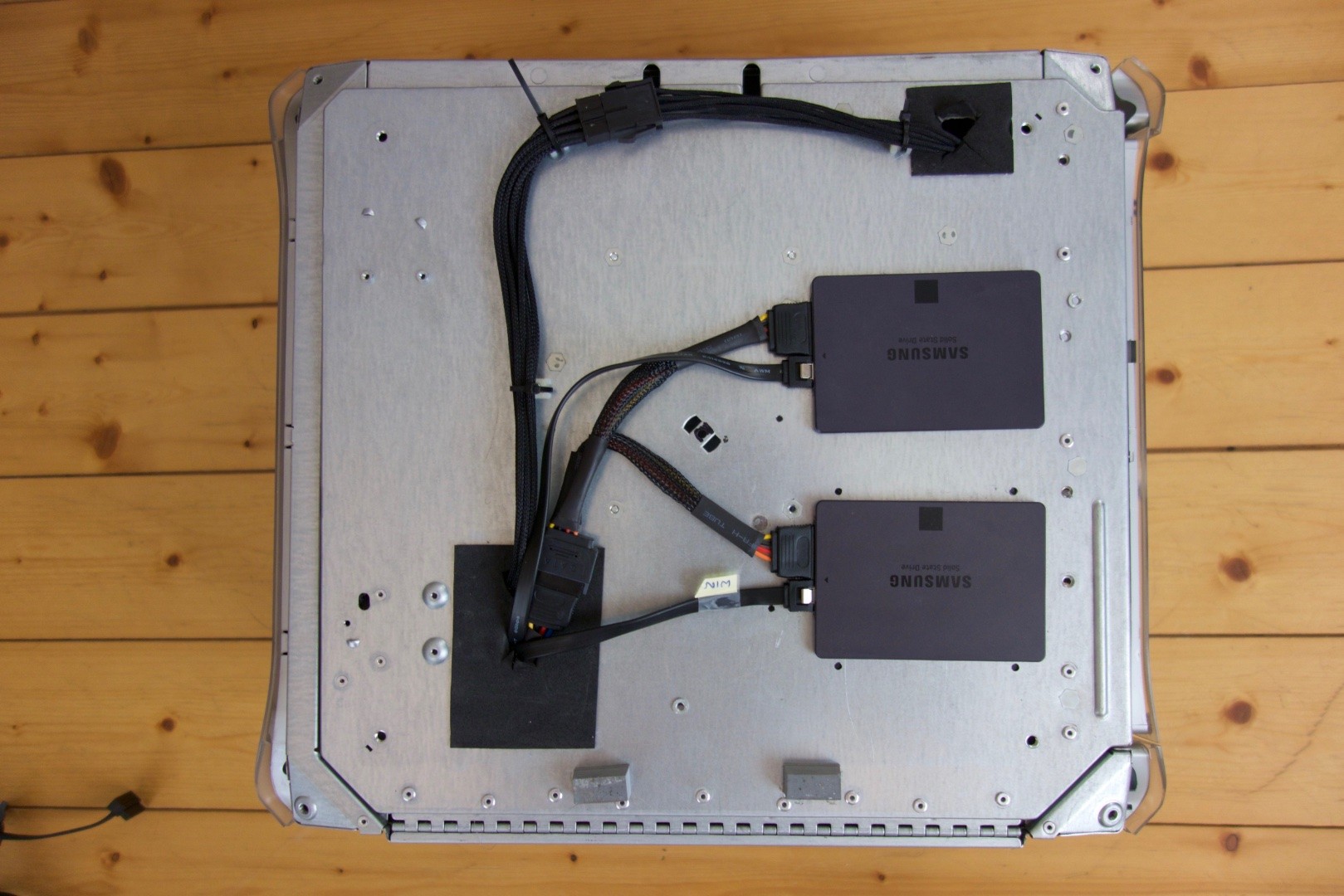 Edit: Auf der anderen Seite des Gehäuses hatte ich noch Platz für zwei weitere SSDs geschaffen.