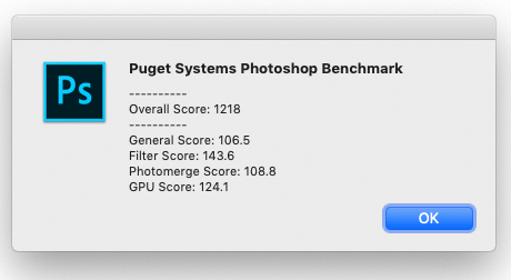 Mein System MacMini 2018, 6 Core, 16 GB Ram. Gebencht mit 18.4 und Photoshop 2018