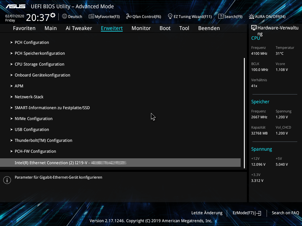 Bei mir auch kein Erfolg. Aber mir ist da noch etwas aufgefallen: der Intel I219V2 - Anschluss wird im BIOS mit MAC-Adresse aufgeführt, der 5Gbit-Anschluss nicht. Obwohl er komplett angeschaltet ist und auch leuchtet, wenn der Rechner schläft. Ich durchsuche da mal das BIOS, seltsam, seltsam!