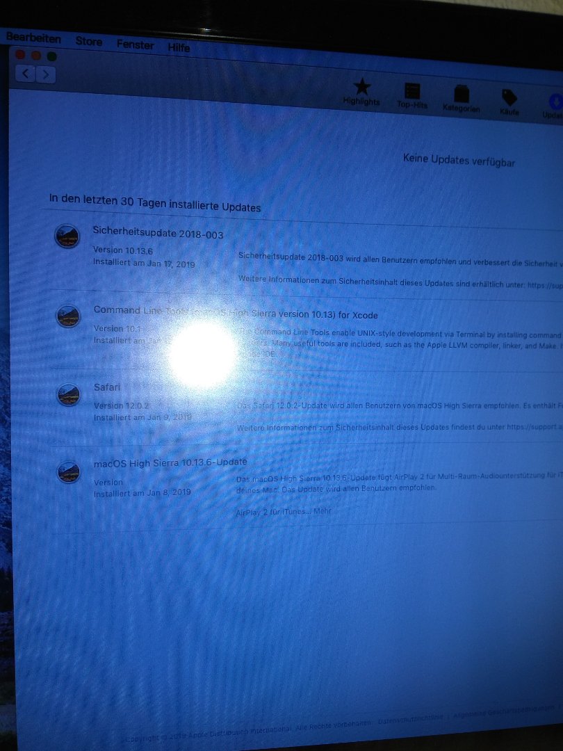 2. habe ich vergeblich mehrfach versucht das Sicherheitsupdate 2018-003 10.13.6 einzuspielen. Das Update wird gezogen, der PC neu gestartet, aber beim nächsten Login in den AppStore wird das Update erneut angeboten, wurde also nicht erfolgreich installiert.