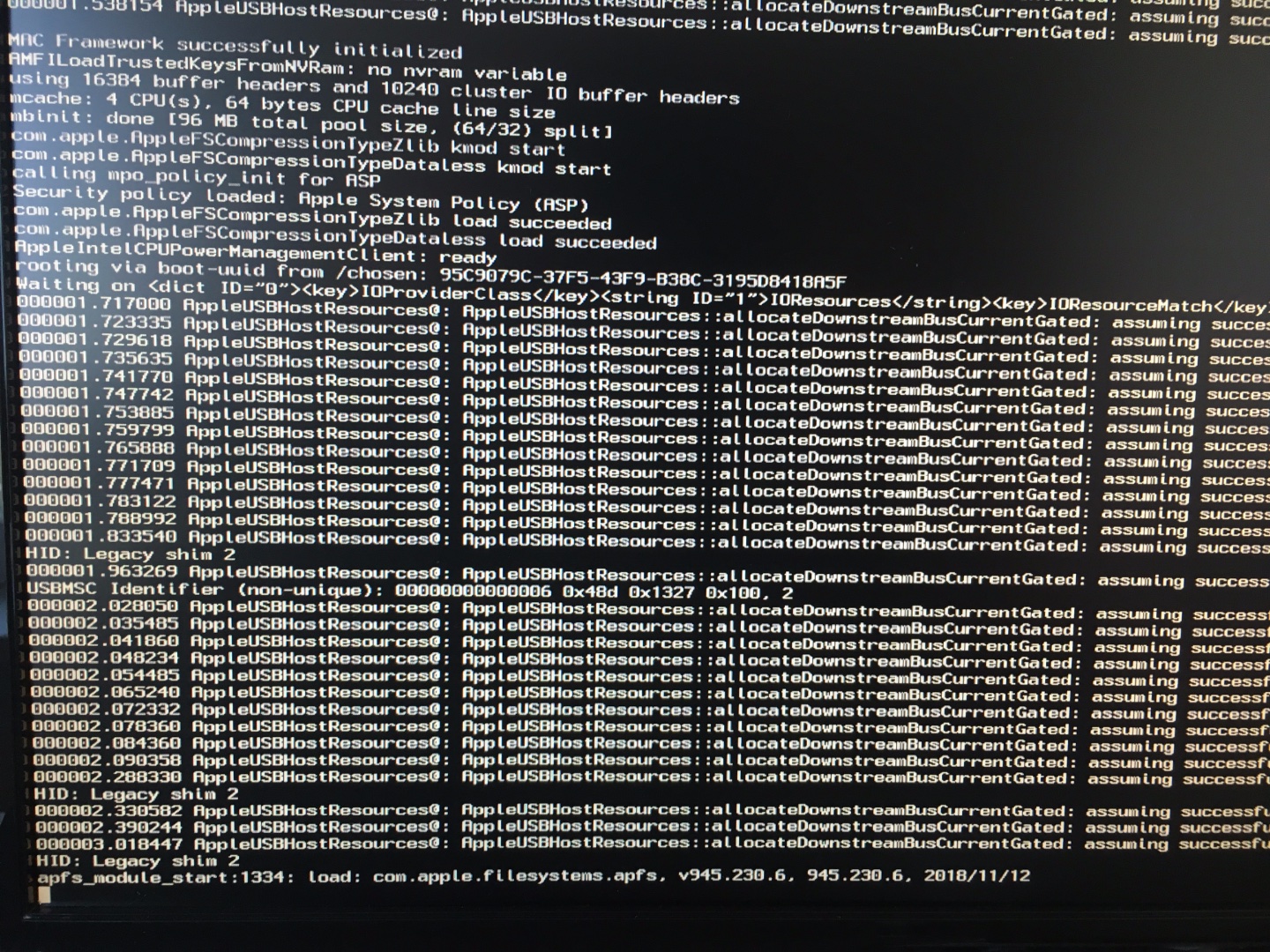 Im verbose Mode kommt ebenfalls der Glitch, obwohl man bereits erkennen kann, dass der Bootvorgang eig ziemlich weit ist, ich würde sogar sagen er ist komplett.