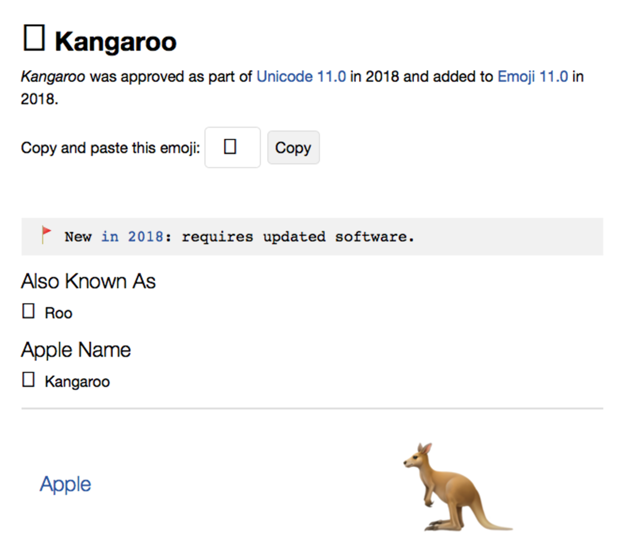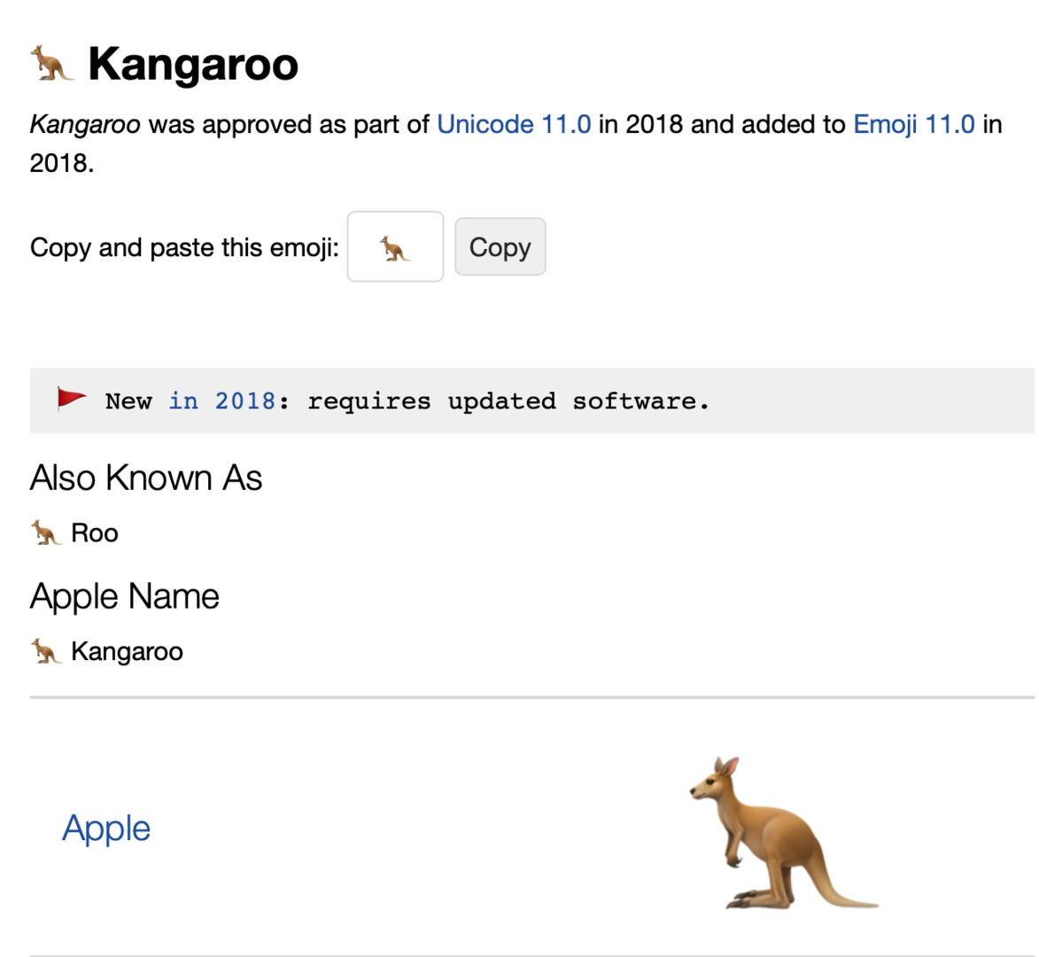 Wie ich helfen könnt, wenn ihr das neuste OSX hat, und dieser Emoji bei euch kein Fragezeichen ist: https://emojipedia.org/kangaroo/
