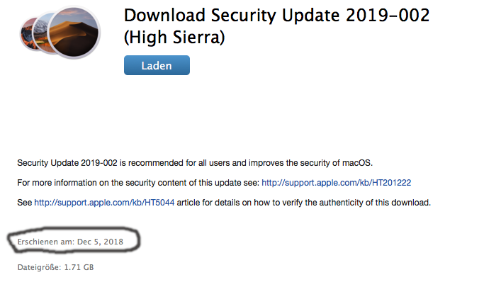Nur Info zu Sicherheitsupdate 2019-002, scheint alles in Ordnung zu sein, OS läuft sehr schön.
