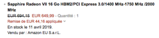 Sapphire Radeon VII für 655,60€ bei Amazon.fr