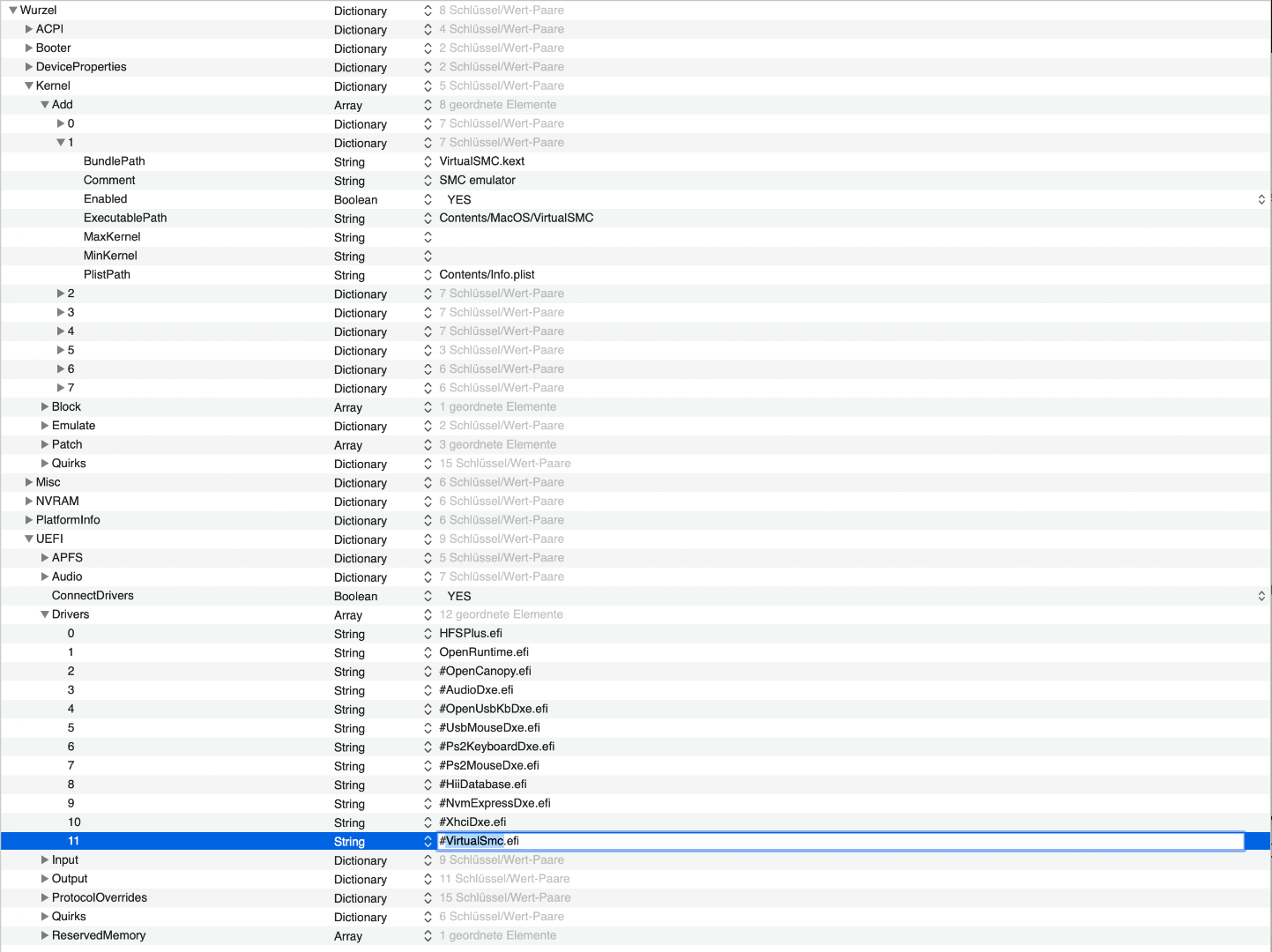 Ich habe Vorgestern auf OpenCore 0.5.8 upgedatet - läuft, aber ich hätte eine Frage zum VirtualSMC: