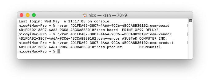 Mir ging es auch nicht allgemein um "SensitiveData" (die sind schon lange bekannt und sinnvoll, zum Beispiel liest "Kext Updater" damit die Bootloader-Version aus), sondern speziell um die recht neuen "Expose OEM Information" wie "oem-board" und "oem-vendor".