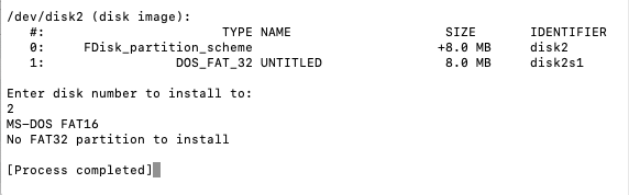 Everytime I want to install via Terminal, a get the message that the Install fails, because the Format of the DMG-Image/Stick is not Fat32.