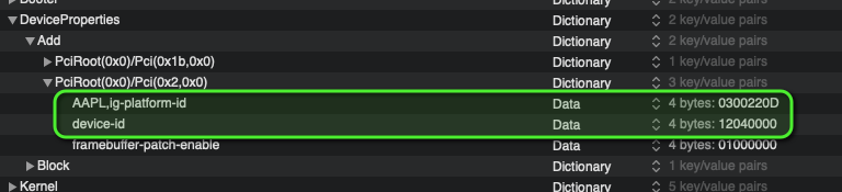 In deine OC-EFI aus #3.179 solltest du folgende DeviceProperties für die Grafik nutzen: