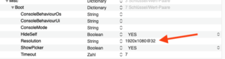- console output (mit dem Apfel oder Verbose)... bei mir 2560x1440