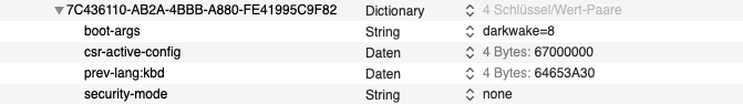 Was ich nach wie vor nicht weiß ist das mit der UUID für NVRAM Boot-Args.