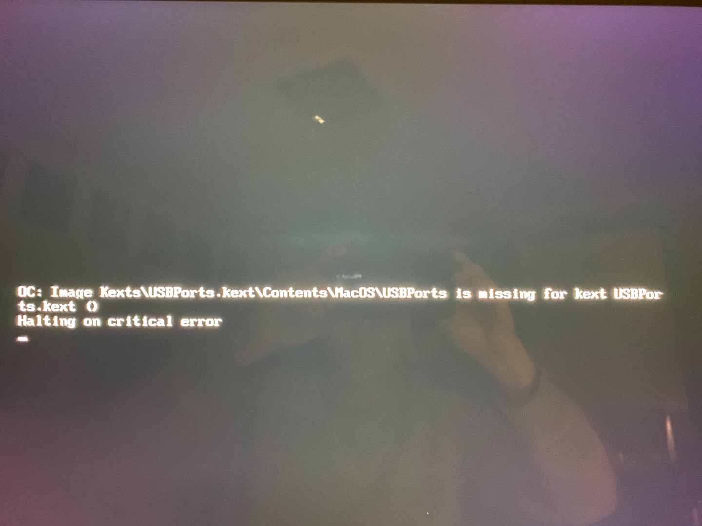 Leider bootet OpenCore dann aber nicht mehr, er steht gleich Anfangs mit dem Fehler: