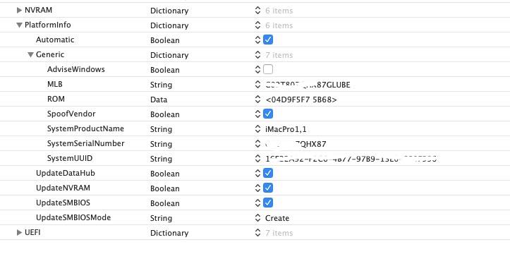 • Leggalucci Und die Seriennummer und MLB haben auch ganz sicher das richtige Format für das Modell iMacPro1,1 und sind nicht von einem anderen SMBIOS übernommen? Die Seriennummer müsste beispielsweise ziemlich sicher mit …HX87 aufhören.