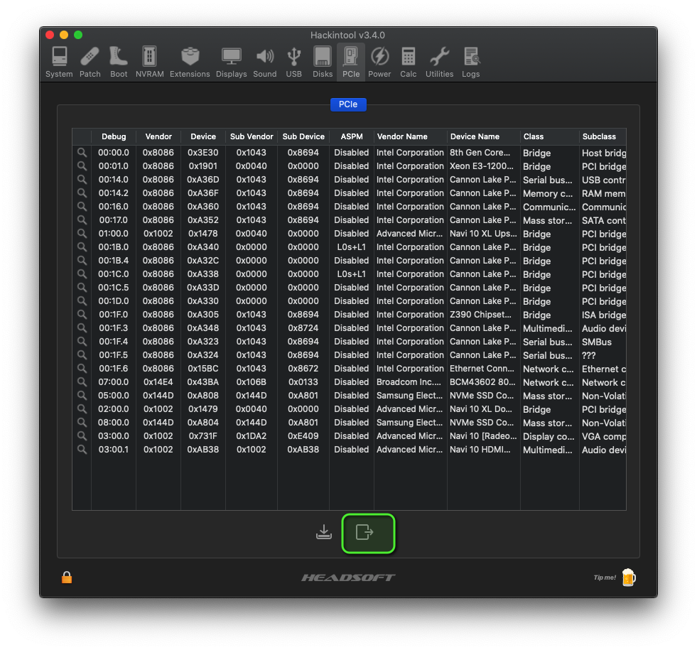 Und der sitzt, auch laut Hackintool, an PciRoot(0x0)/Pci(0x1F,0x3).