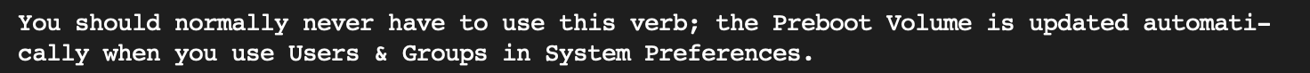 Der updatePreboot Befehl war mir eh suspekt, brauche ich also nicht mehr zu probieren. Die man-page zu diskutil sagt dazu unter anderem: