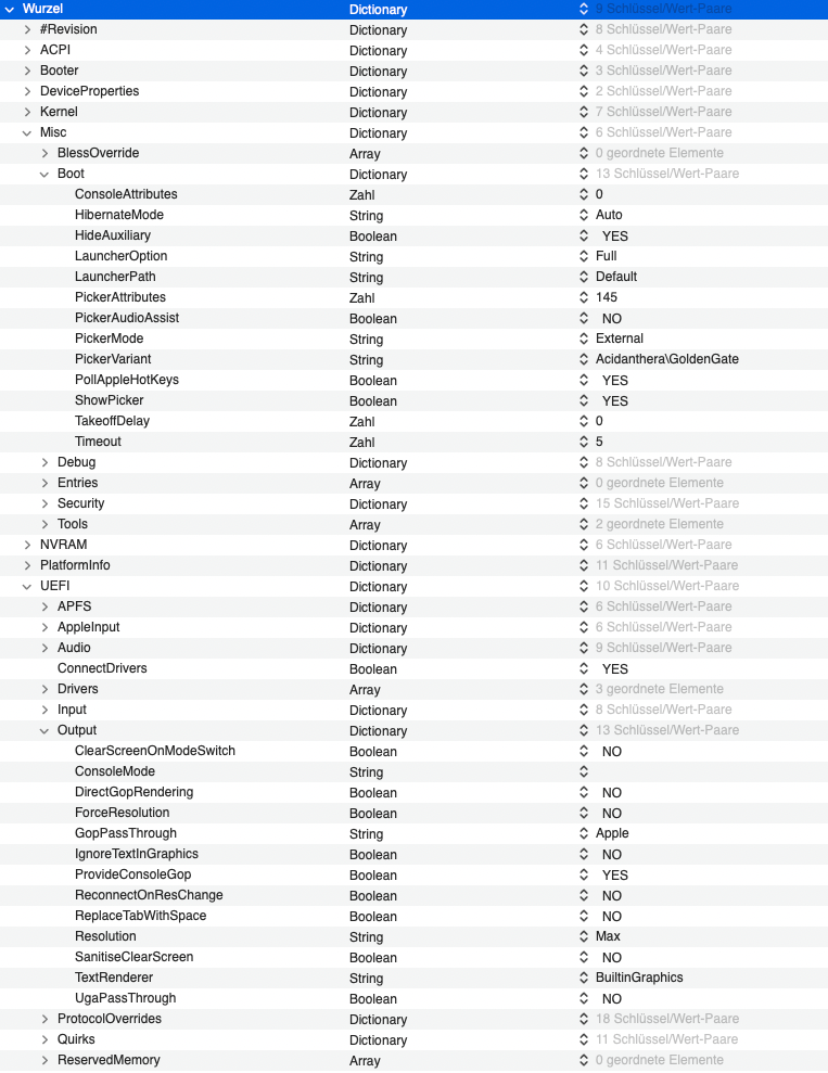 • Sowie es ausschaut, hast Du kaneske, meine config.plist gemerged mit einer anderen. Wie machst Du das?