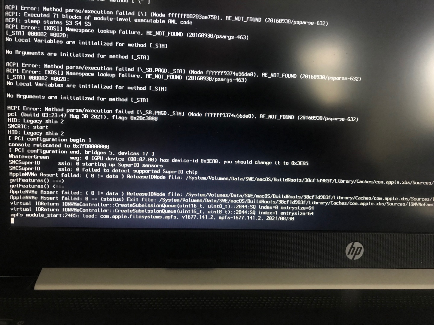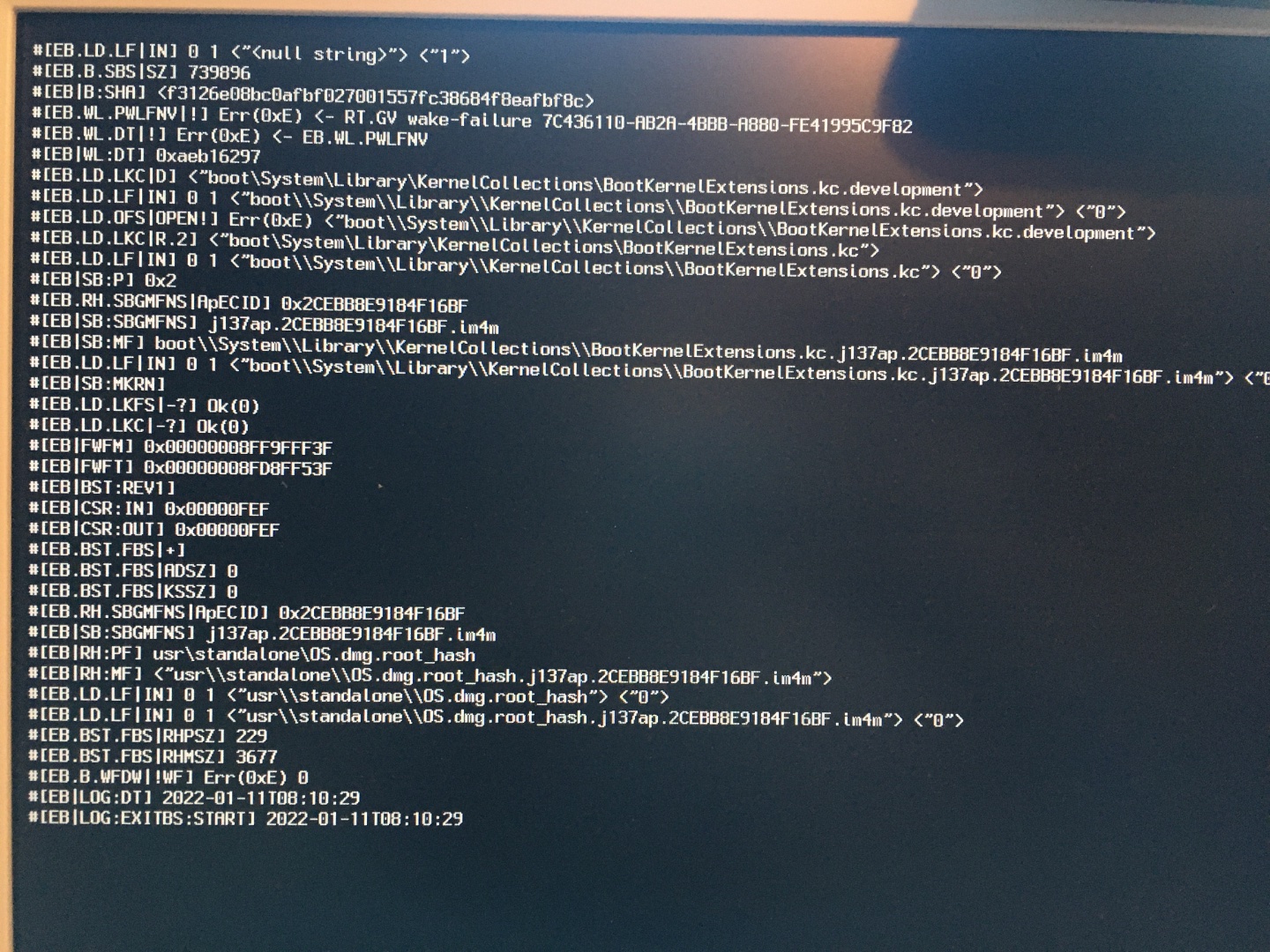 Ich denke mal, ich habe mein Problem hier im falschen Bereich gepostet. Ich bekomme den HP einfach nicht zum Laufen. Im Moment habe ich die DEBUG-Version als EFI, komme aber auch nicht sehr weit. Nach der Auswahl "macOS installieren" läuft alles bis zu der abgebildeten Zeile, danach ist Schluss, nichts geht mehr.