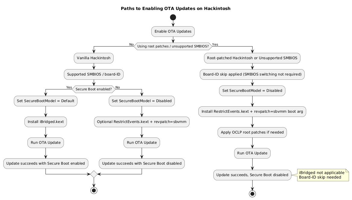 Man benötigt dann RestrictEvents und SBVMM board-id spoof nicht mehr. Der Vorteil ist, dass man dafür dann SecureBootModel auf Default gestellt lassen kann. Allerdings funktioniert dieser Pfad nur unter 2 Voraussetzungen: