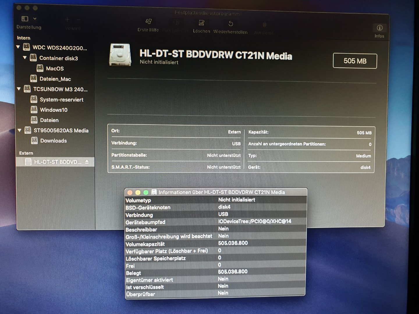 und nun das nächste Problem mit meinem Medion Laptop und Mojave.