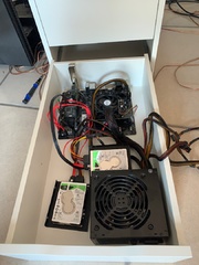 Als Software löppt OpenMediaVault. Das NAS wird nur bei Bedarf eingeschaltet, also kein 24/7 Betrieb.