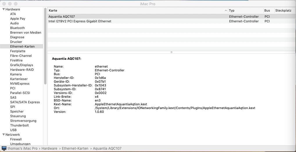• Ich habe ein Asus 10G ethernet karte eingebaut und die funktioniert auch allerdings mit einem kleinen Problem.